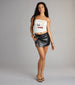 Ready to turn sidewalks into runways? This faux leather belted mini skort brings all the sass with...