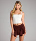 Giving flirty skirt vibes with secret short energy—obsessed. This ruched hanky hem mini skort brings the drama...
