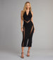 This dress doesn't whisper—it speaks. With bold mesh panels and a sculpted halter neckline. it's made for...