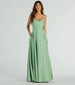 Unlock ravishing charm in the Silvia A-line formal dress as a stunning bridesmaid. wedding guest. or attending a banquet! The cowl neckline and adjustable spaghetti straps add elegance to the A-line silhouette. while the lace-up back flaunts your style and hidden side pockets keep your hands warm. The high front slit and floor-length hem allow for graceful movements. and the floral jacquard pattern on soft satin fabric exudes sophistication. Complete the look with a decadent necklace and earrings set.