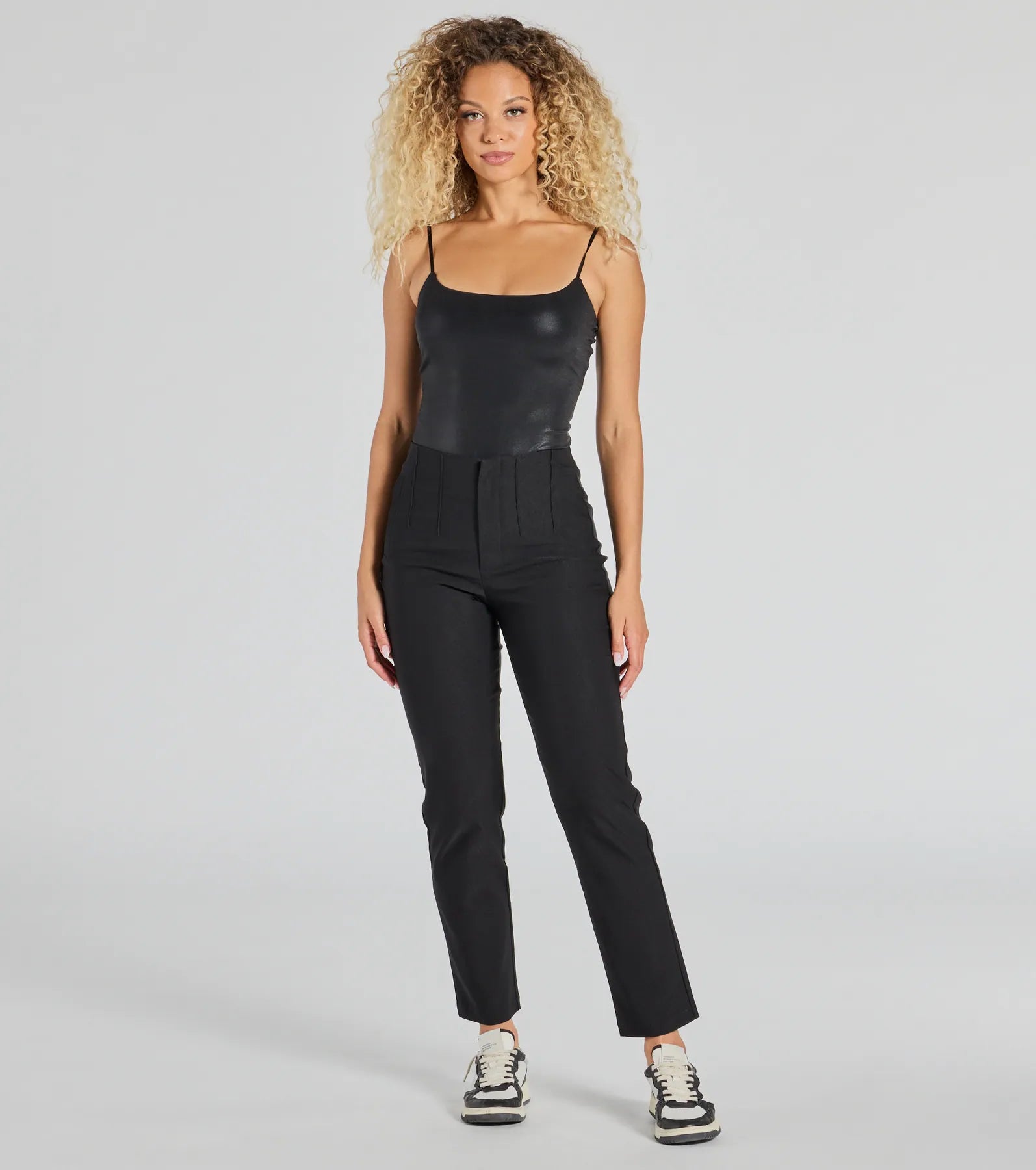 Simple yet so chic. these woven trouser pants feature a high-rise waist with an elevated pintuck seam...