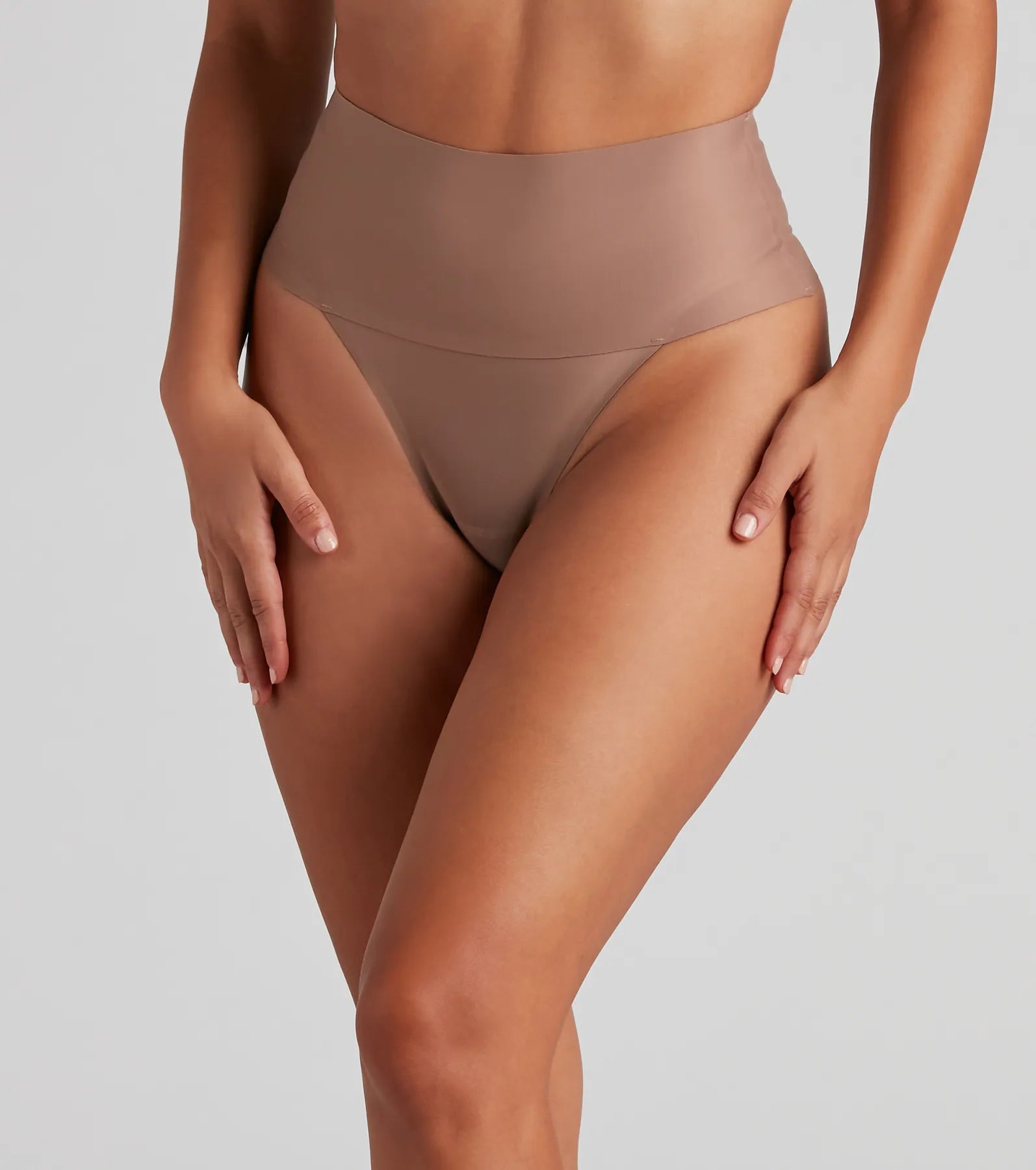 This mid-rise shapewear thong instantly creates a smooth and seamless look to any outfit! This tummy-control shapewear thong has a mid-rise fit made of a smooth and supportive material for a discreetly seamless look. Style this shaper thong under bodycon dresses. fitted pencil skirts. or form-fitting jumpsuits. Style this shaper under form-hugging bodycon dresses and fitted jumpsuits.