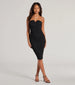 A sophisticated mesh midi dress perfect for cocktail hour! It features a strapless sweetheart neckline. chic cowl...