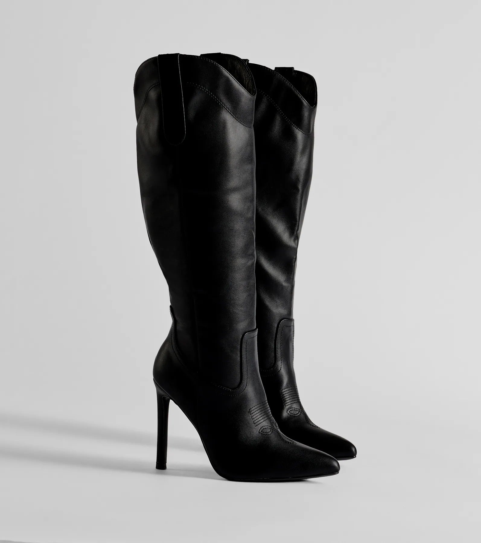 Sleek Western Under-The-Knee Stiletto Boots