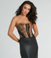 Keep it skin tight in this saucy snake print faux leather corset top for a cool-girl vibe...