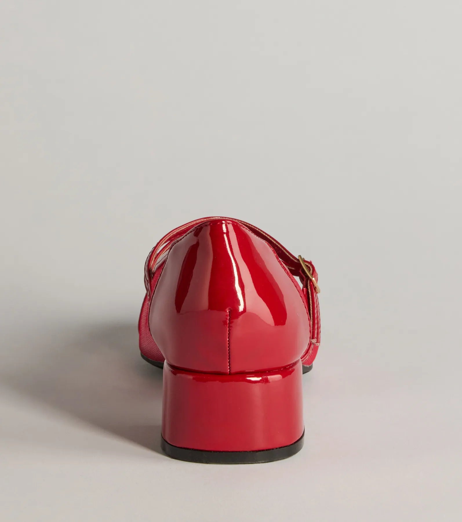 A chic twist on a classic. these Mary Jane faux leather block heels with mixed patent leather...