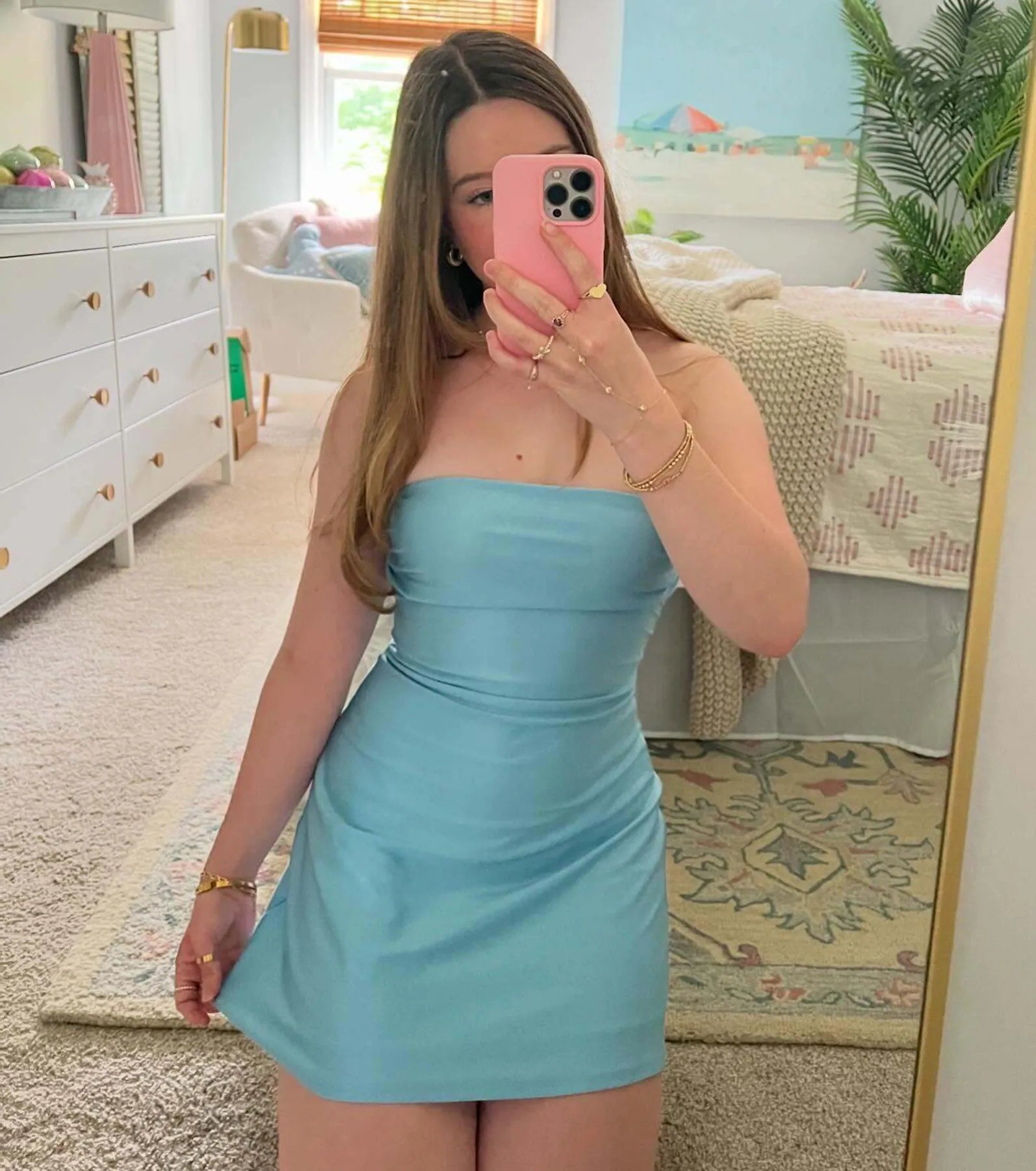 This adorable strapless A-line mini dress is so your vibe! Designed with a stretchy lined knit fabric....