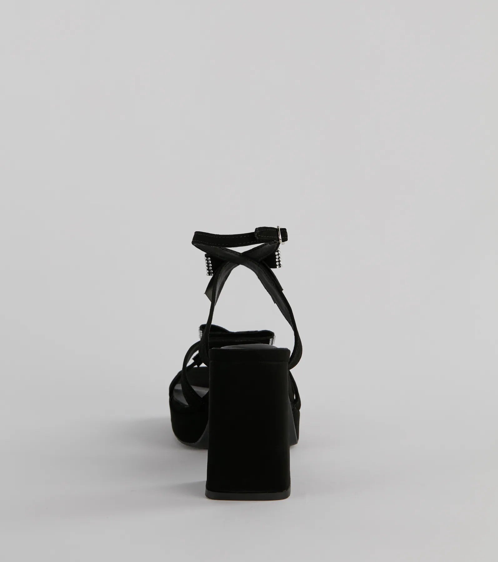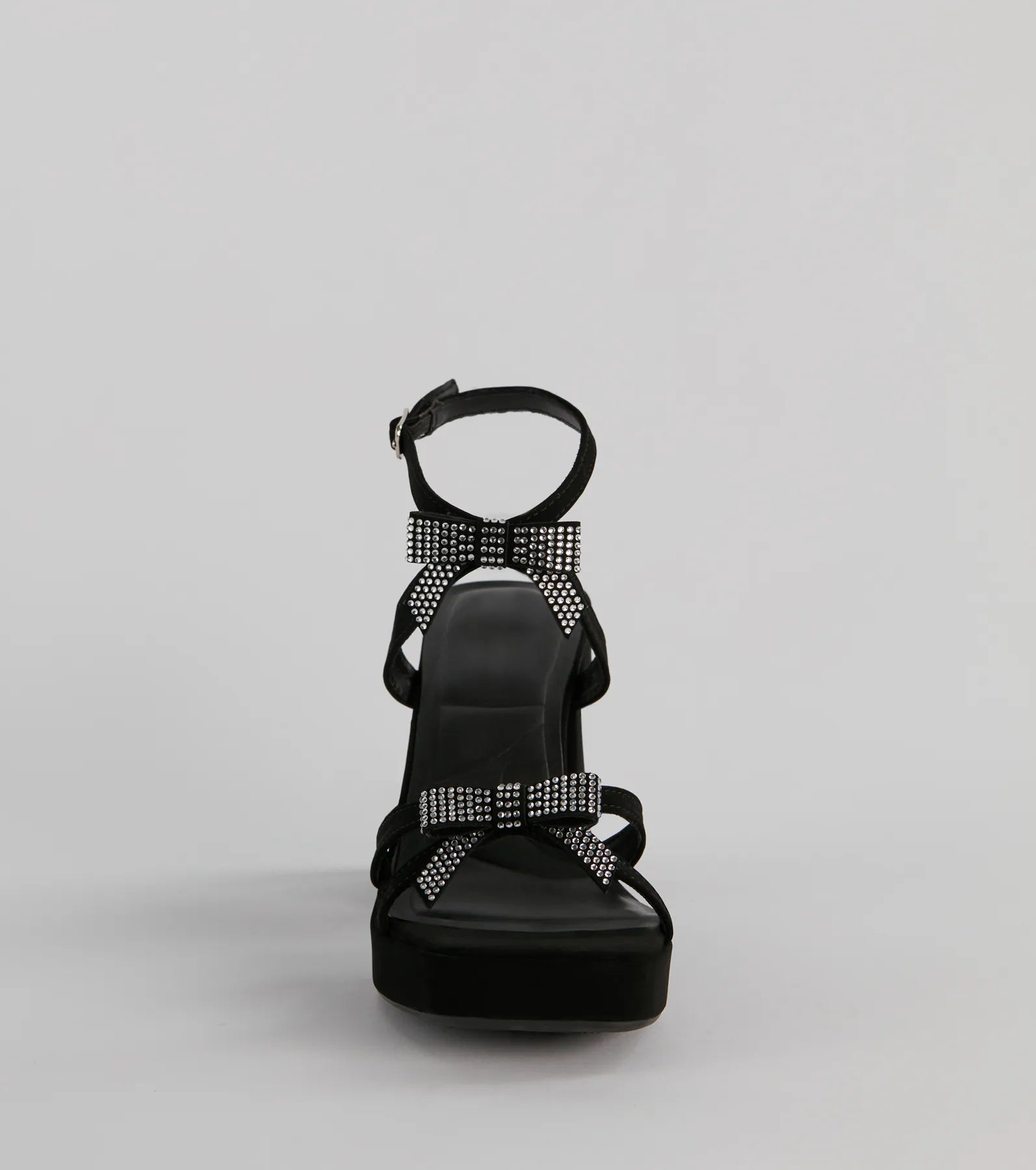 Soiree Glam Rhinestone Bow Platform Block Heels
