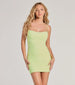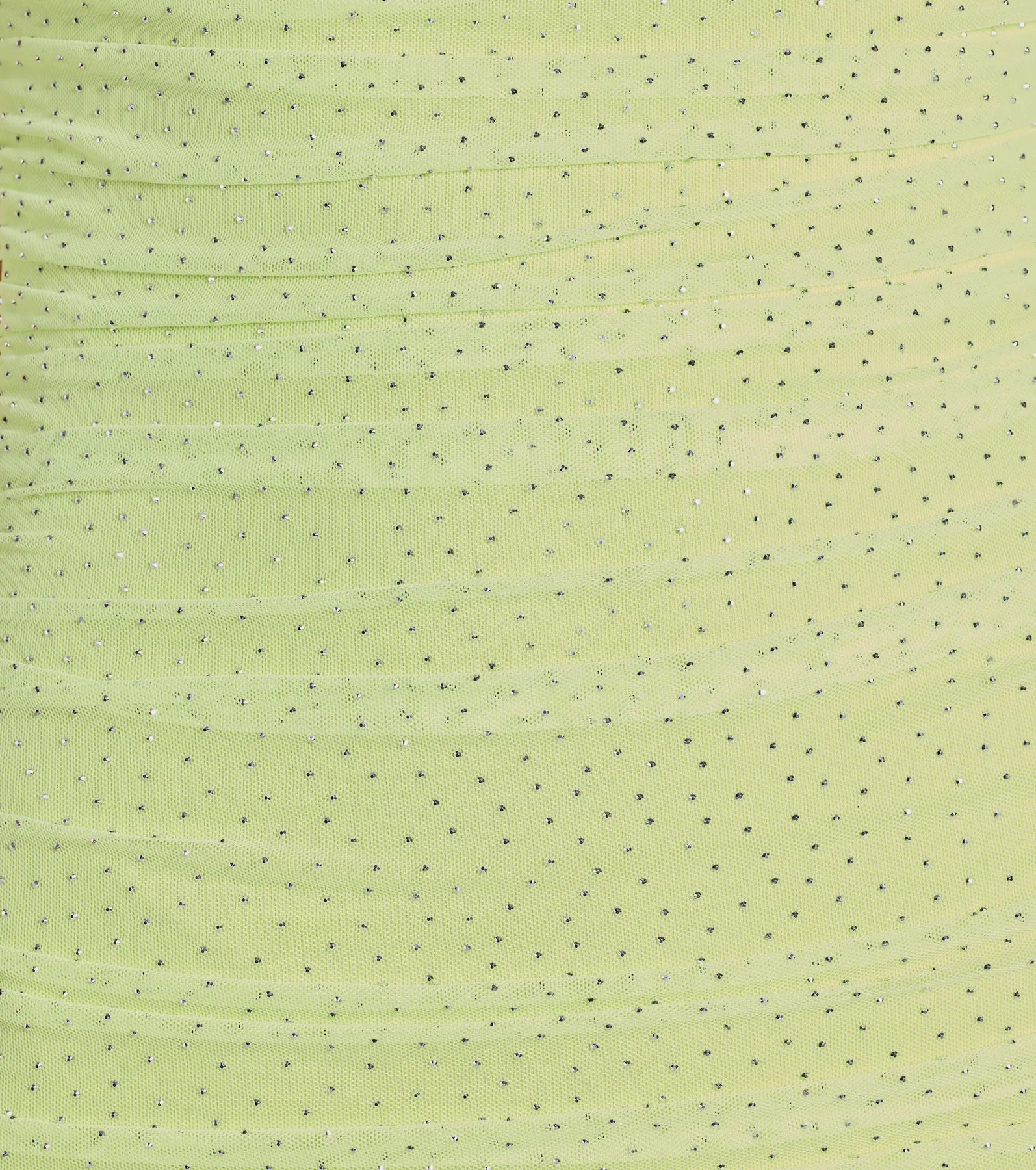 It's your time to sparkle up the night in this iconic rhinestone bodycon mini dress! Designed with a stretchy sheer mesh fabric with a knit lining for coverage. this mini-length dress will have you radiating glamour with the mini rhinestone embellishments accented all over the silhouette. It features a sleeveless cowl neckline for a chic feminine vibe and bungee spaghetti straps that lead to an open back with a cross-back design to add some allure. The ruching down the side seams will accentuate your curves. and the bodycon fit will flaunt your gorgeous figure. Complete your look with rhinestone fringe earrings and platform heels.