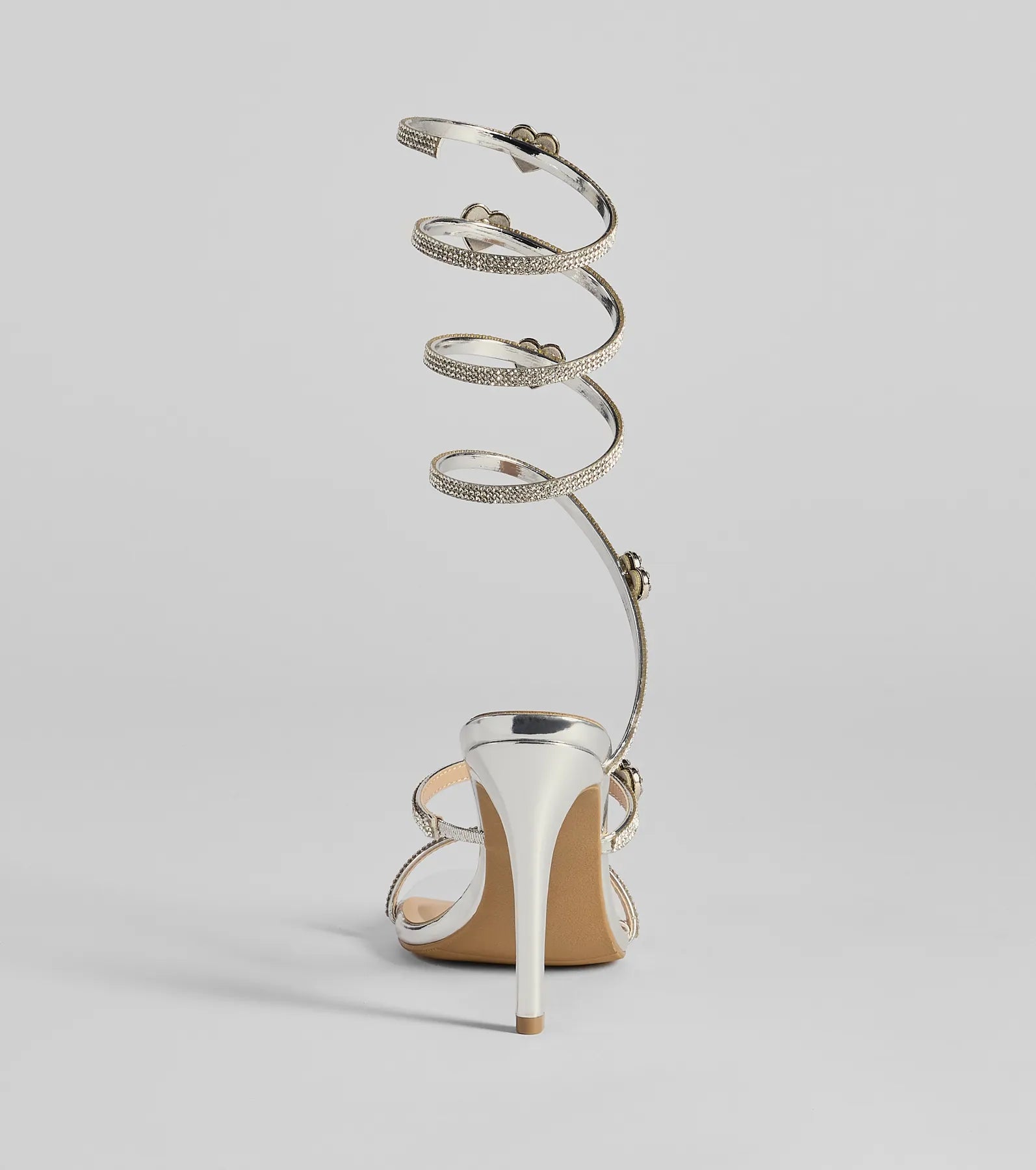 Sparkly Stride Metallic Spiral Strap Stiletto Heels