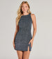 The spotlight will be on you in this flirty open back glitter mini dress featured in a...