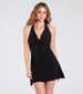 Steal the show in this sassy halter mini dress in a flattering plunge neckline and A-line silhouette...