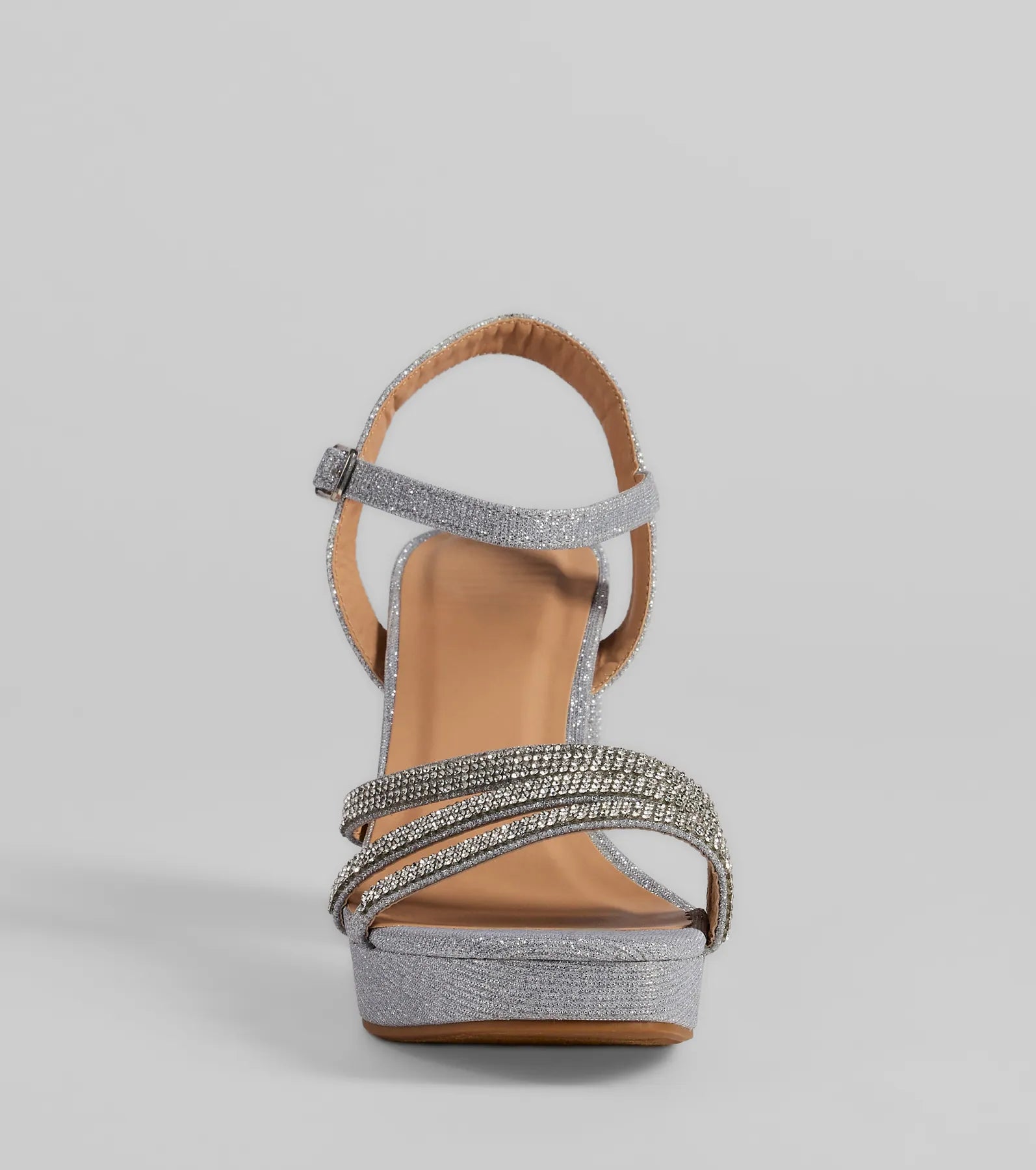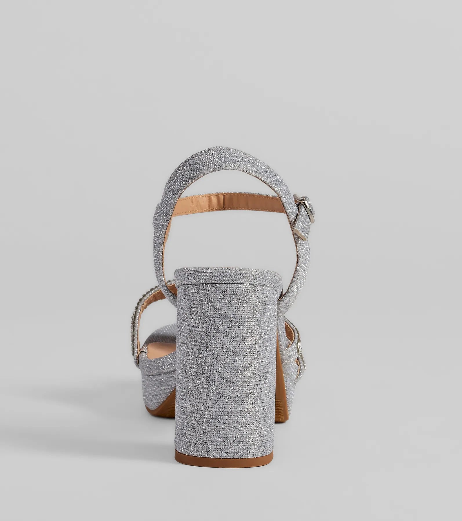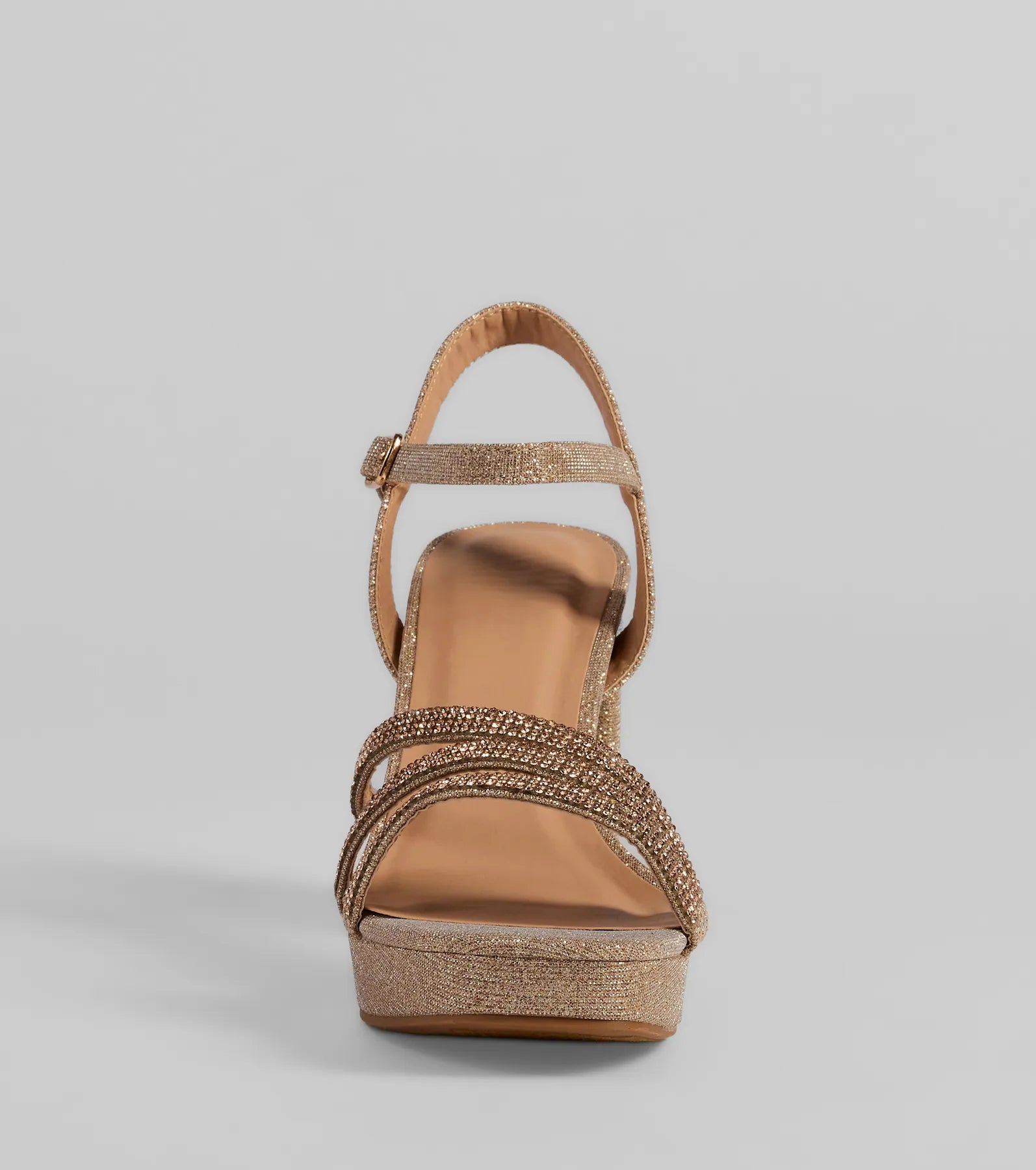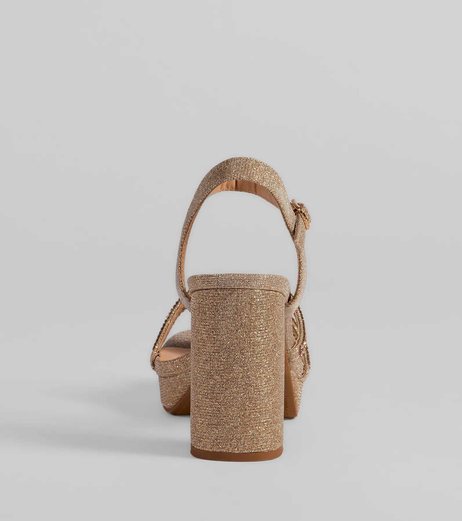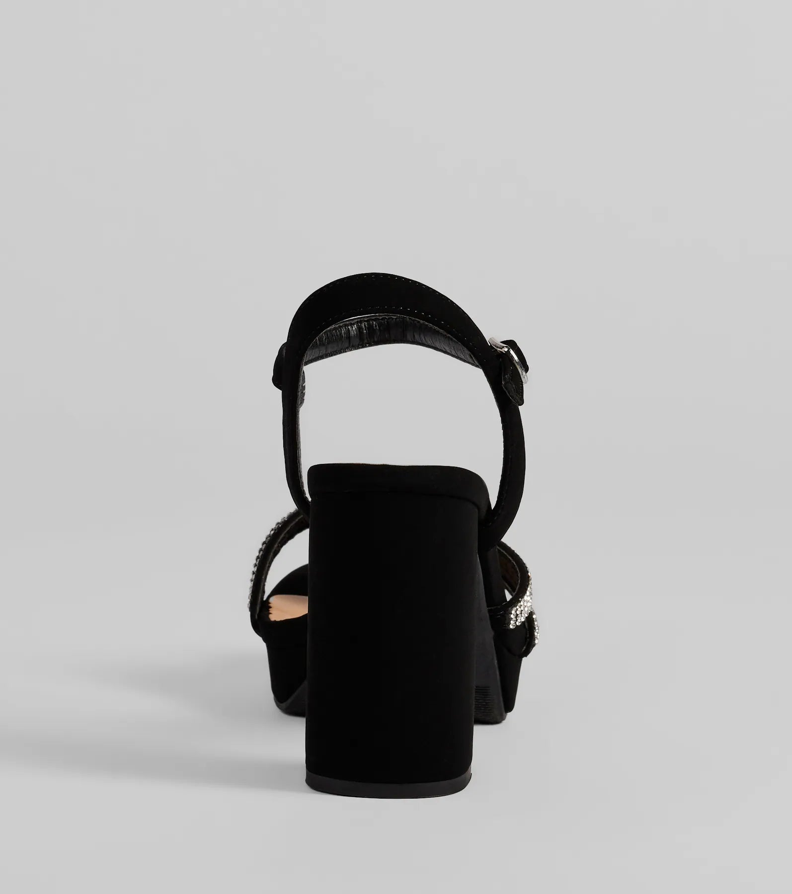 Stepping Out Rhinestone Strappy Platform Block Heels