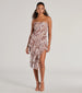 Make a stunning impression in this strapless floral midi dress designed with ruffled accents and a high...
