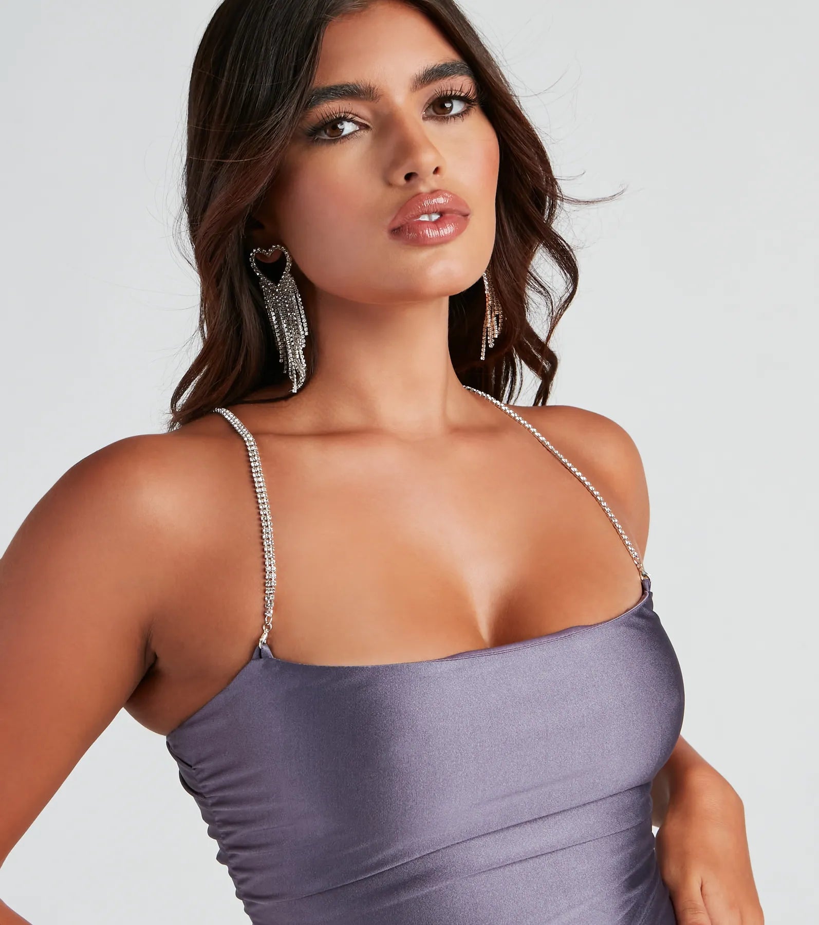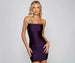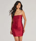 Keep it sophisticated with a satin mini dress that radiates luxe. The dress features a sleeveless square...