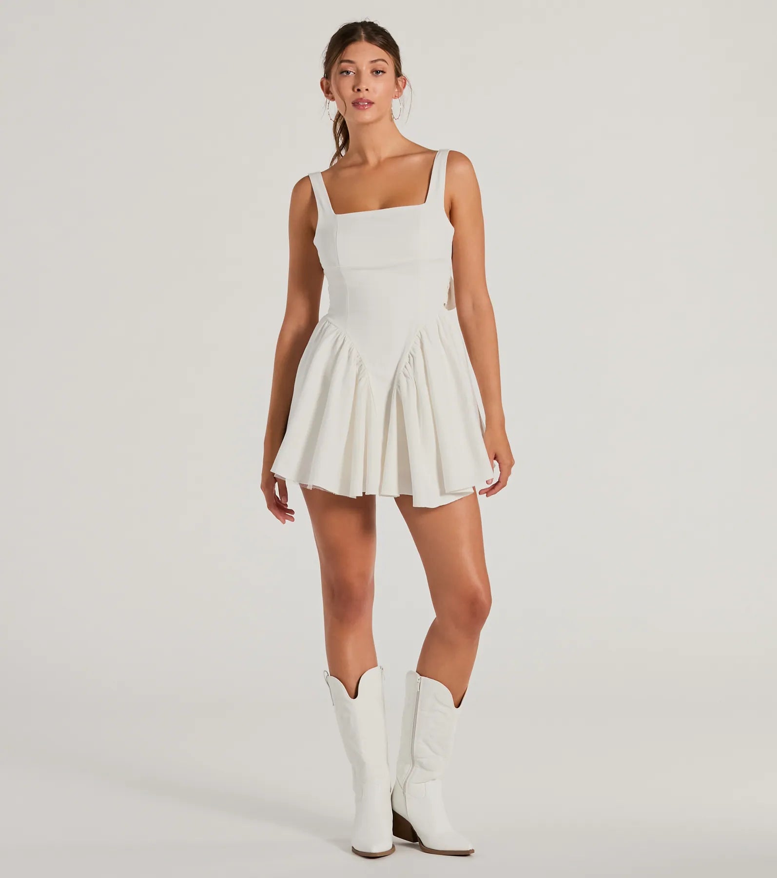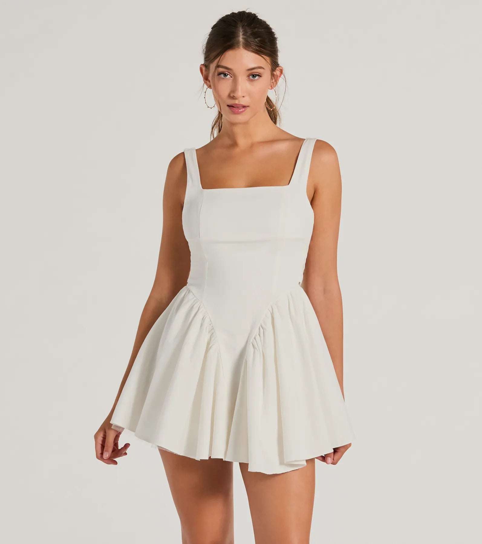 Arrive like the stunning sweetie you are in this short skater dress as the bride-to-be. graduate. or...