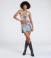 Cinch your look together with this sassy denim mini skort with a unique belted overlay design and...
