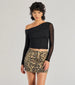 Keep it chic in this sheer mesh long sleeve top. With an asymmetric off-shoulder neckline and pleated...
