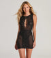 Bring the sultry glitz to your next girl's night out in this rhinestone mesh bodycon mini dress!...