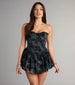 Serving sultry and sweet all at once—this skater dress is a whole vibe. The glitter-flocked floral details...