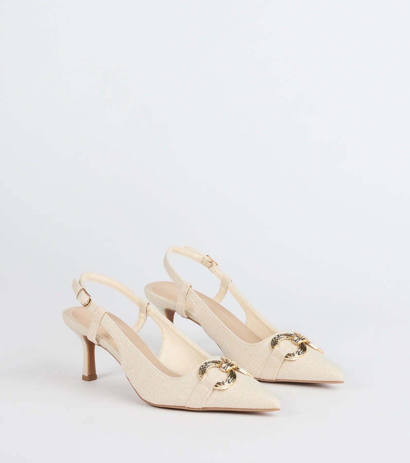 These slingback stiletto pumps will be your new summer fave. designed with circular buckle accents and chic...