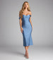 Romantic with a sultry flair? Say less. This off-shoulder midi dress stuns with a sweetheart neckline. curve-hugging...