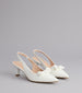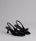 Polished with a playful twist. These patent slingback kitten heels feature a pointed toe topped with a...
