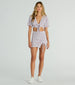 Sweet and flirty. this floral ruched mini skirt will capture the soft girl trend! The lightweight knit...