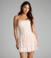 Giving soft girl glam with a flirty twist—this floral lace strapless mini dress brings all the charm....