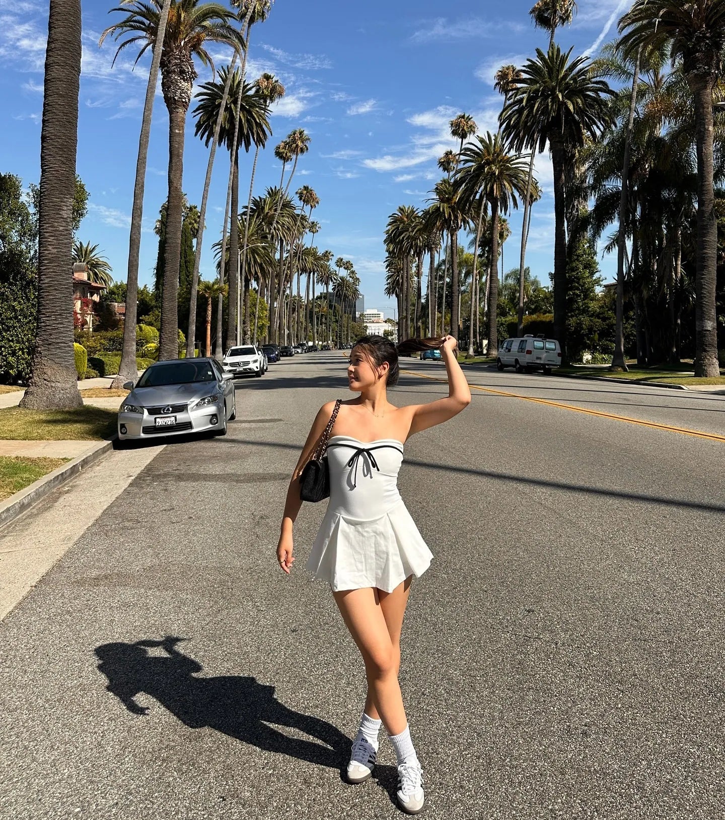 Sweet Muse Strapless Bow-Detail Skater Romper