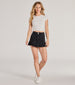 This denim mini skirt features a flattering high-rise waist and pleated hem for added flirty flair. Perfect...