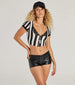 Call the shots as a chic referee this Halloween in a stretchy knit crop top that features...