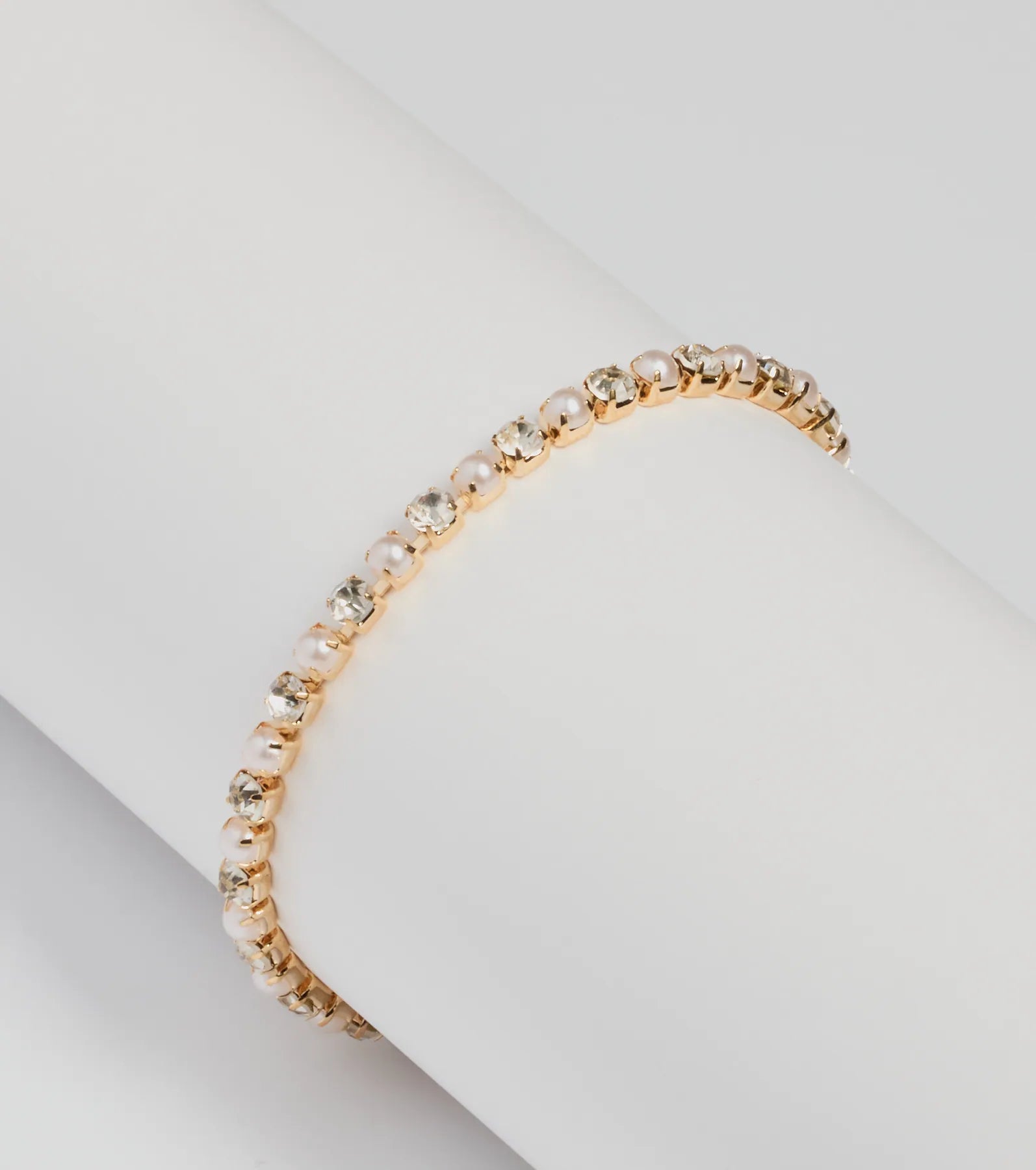Timeless Glam Rhinestone Faux Pearl Tennis Bracelet