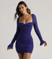 Cue the compliments! The Tracey party dress will have all eyes on you at bachelorettes. school dances. or birthdays. The formal party dress is composed of an airy mesh fabric with tonal faux pearl embellishments for a chic allure and has a sewn-in knit lining for coverage. She features sheer fitted and ruched long sleeves with slit cuffs. a sweetheart neckline with a padded bust. a cowl overlay. side ruching to accentuate your natural curves along the bodycon silhouette. and a mini-length hem. Finish the look with dangly earrings and heels!
