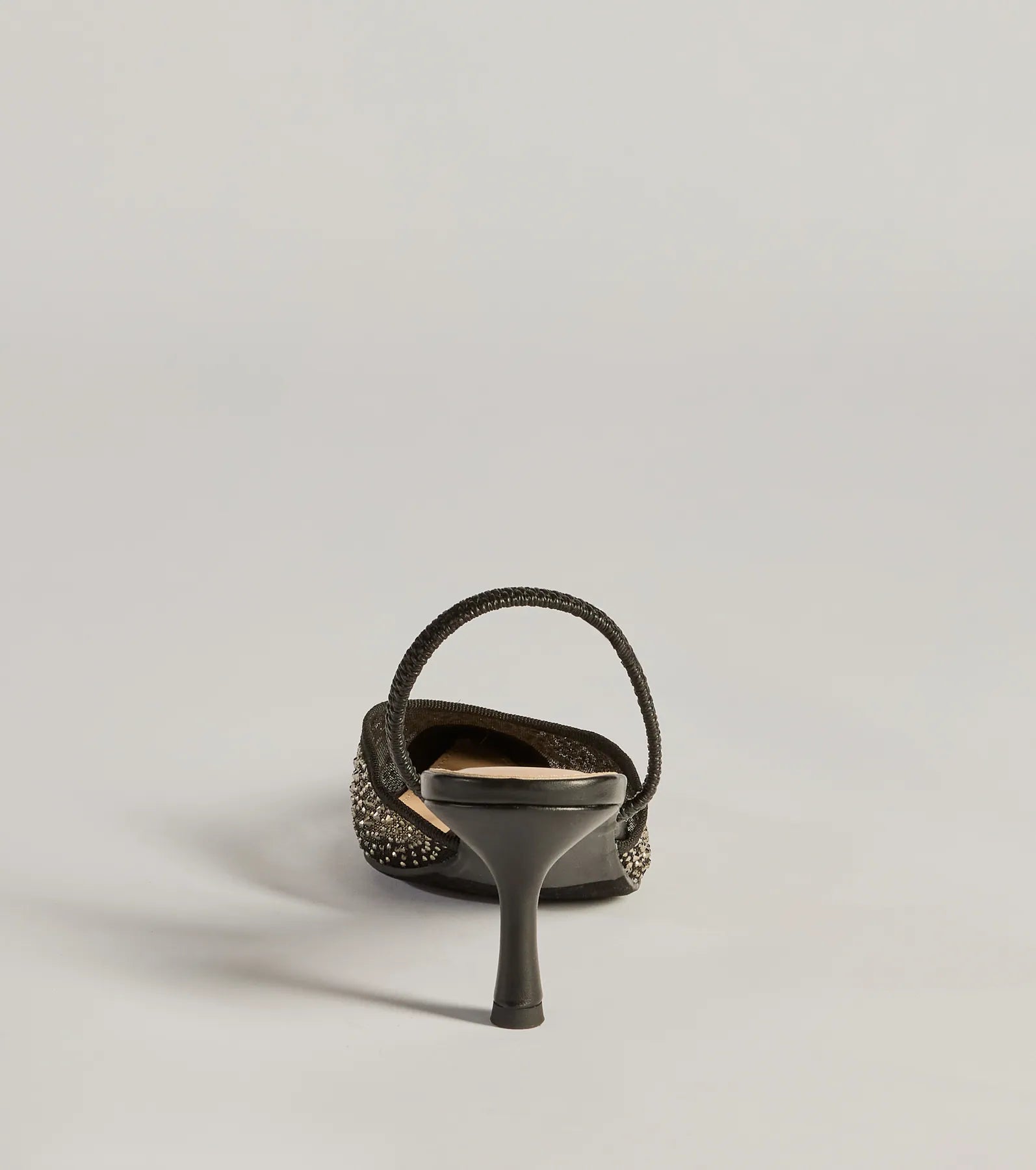 Trend Alert Rhinestone Mesh Sling-Back Kitten Heels