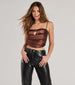 Level up the trend factor of your night out look in this satin crop top featuring a...