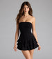 Show up and show off a trendy attitude at happy hour in this strapless skater romper. The...