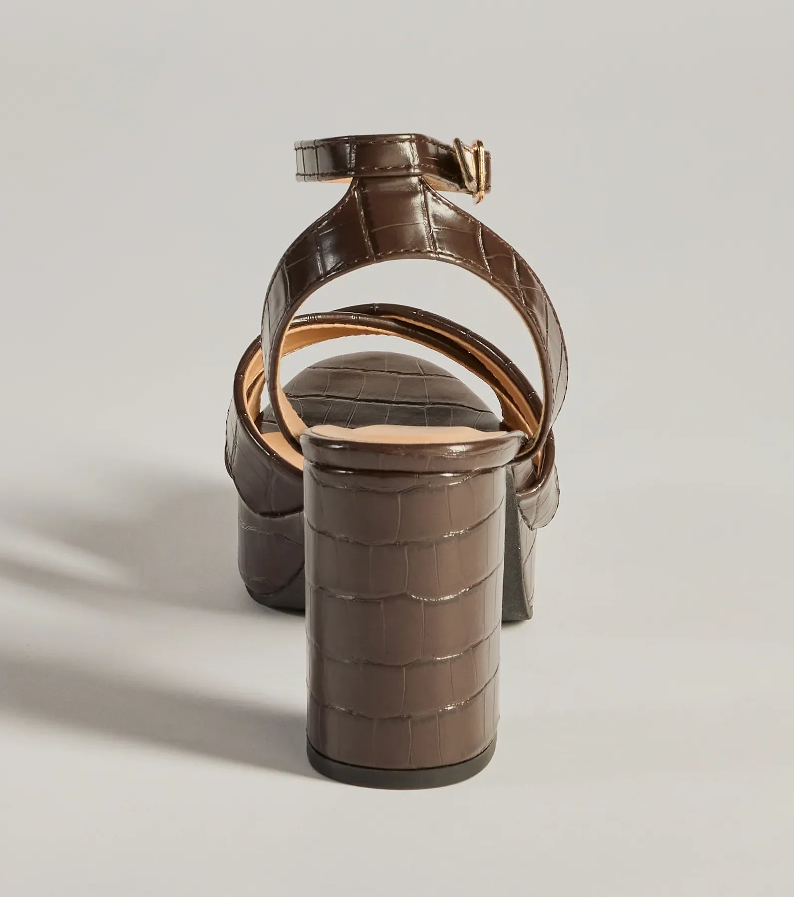 Trendy Moment Faux Croc-Embossed Criss-Cross Platform Heels