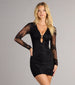Dark. sultry. and unforgettable—this long sleeve mini dress mixes sheer lace with a bold cutout and hardware...