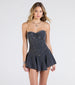 Uniquely Darling Strapless Pleat Skater Denim Mini Dress