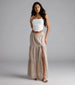Vintage charm is yours with this gingham peasant maxi skirt showcasing a modern high front slit for...