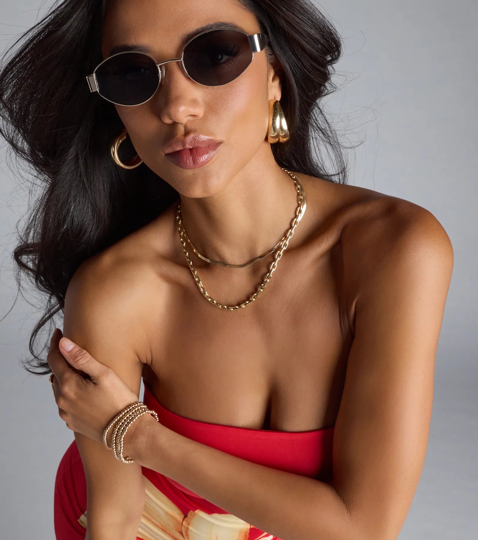 These retro-inspired oval sunglasses give your fit an instant upgrade—perfect for rooftop brunches. low-key flexes. and celeb-off-duty...