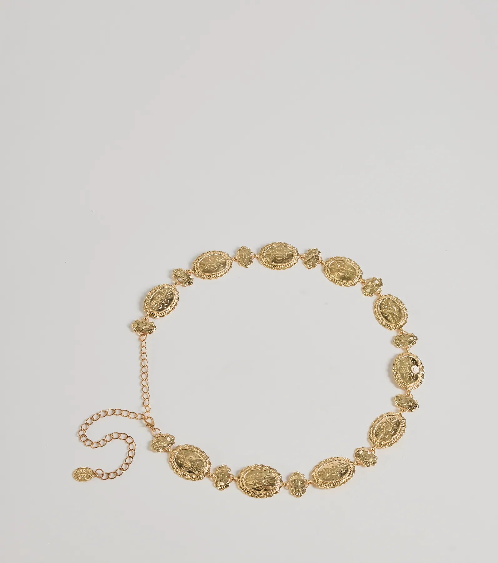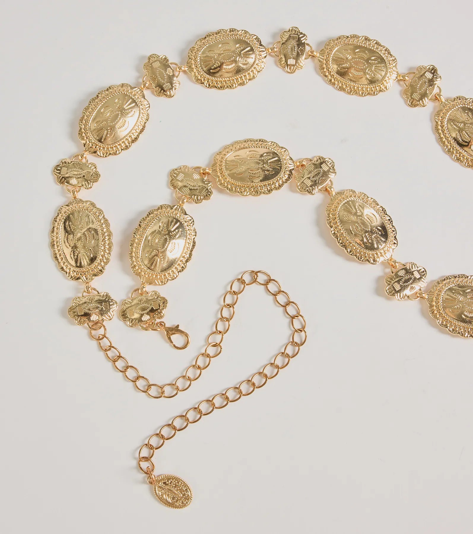 Saddle up with this playful etched concho belt. featuring an adjustable lobster clasp closure. Wrangle up some...