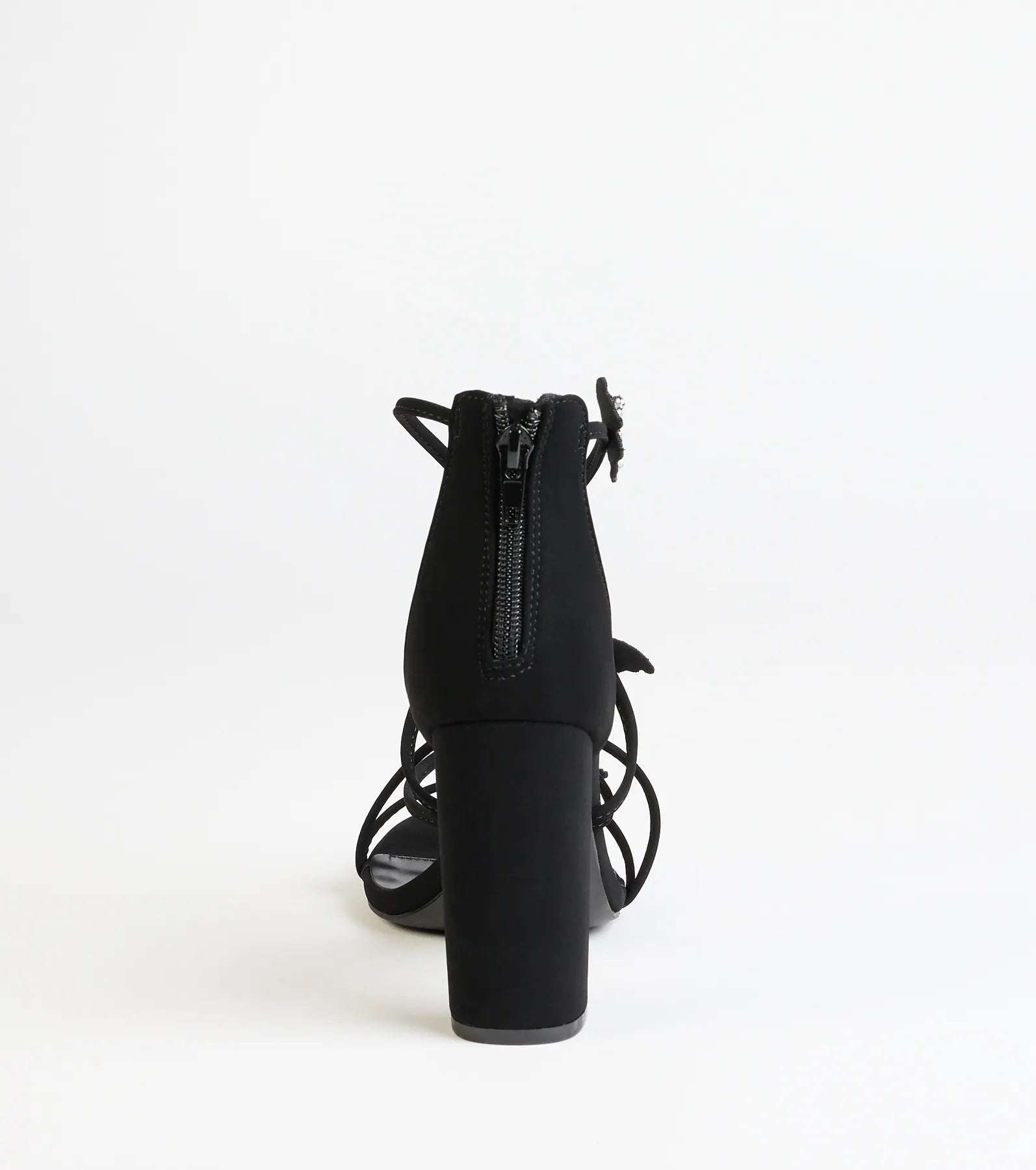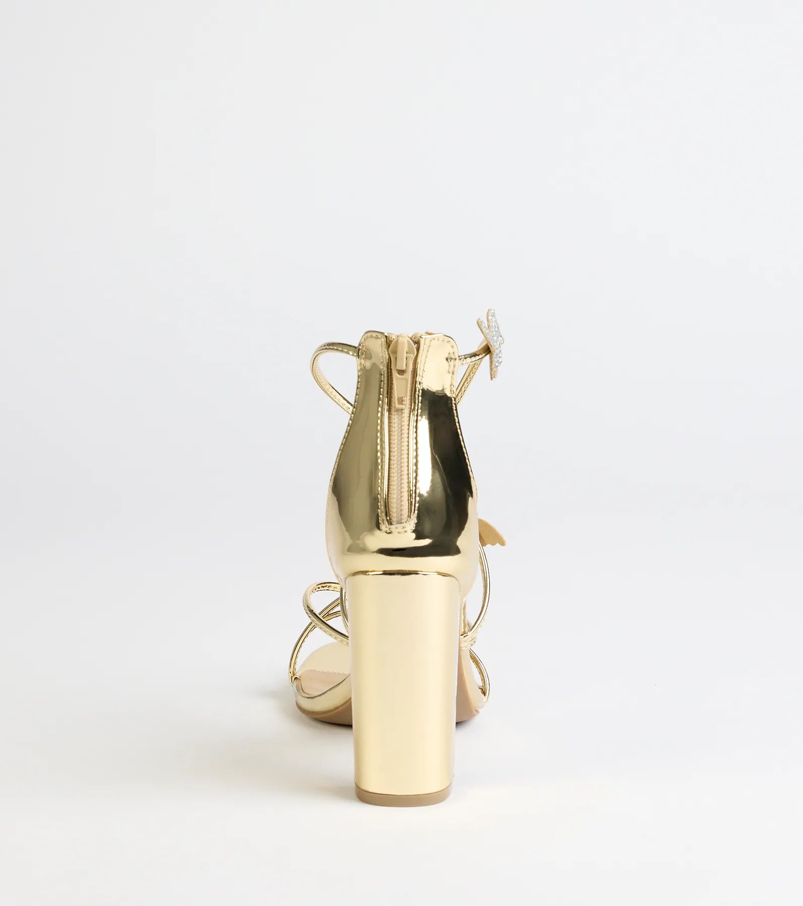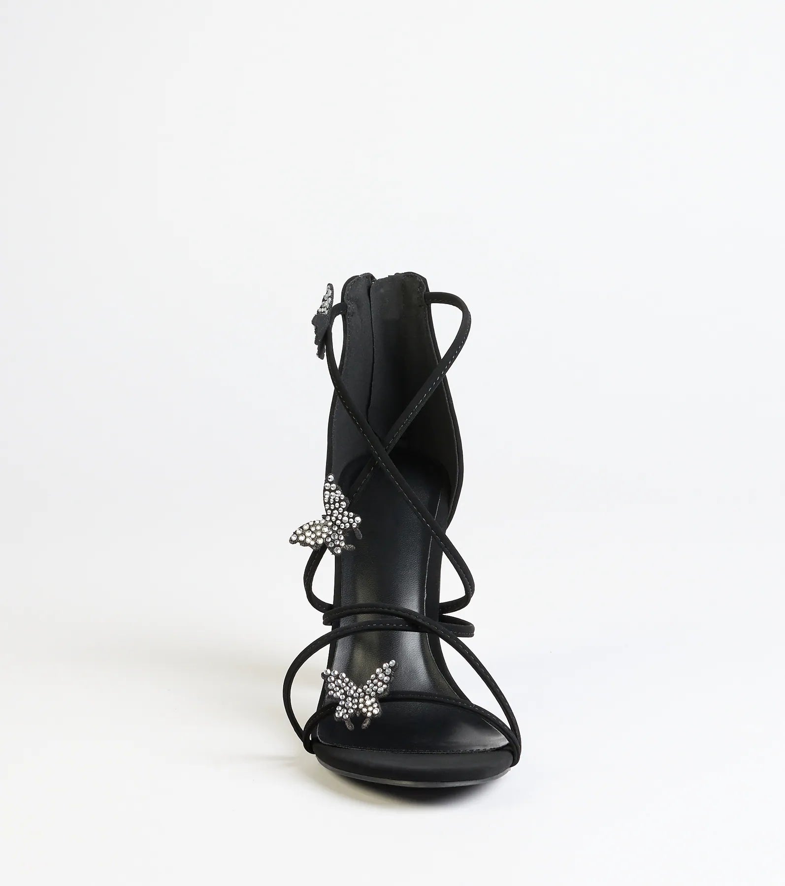 Whimsically Chic Butterfly Rhinestone Block Heels