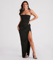 Captivating yet subtle details create the eye-catching Whittney formal crepe dress perfect for fancy parties. cocktail events. and galas! She stuns in a classic strapless square neckline with a padded bust. a fitted bodice. and a pleated side seam that creates the illusion of an hourglass figure. Her curve-hugging. slim-fit silhouette offers a show of skin in a high-cut front slit and a long-length hem that gracefully sweeps along the floor. Complete your dressy look in this formal long dress with earrings and simple block heels!