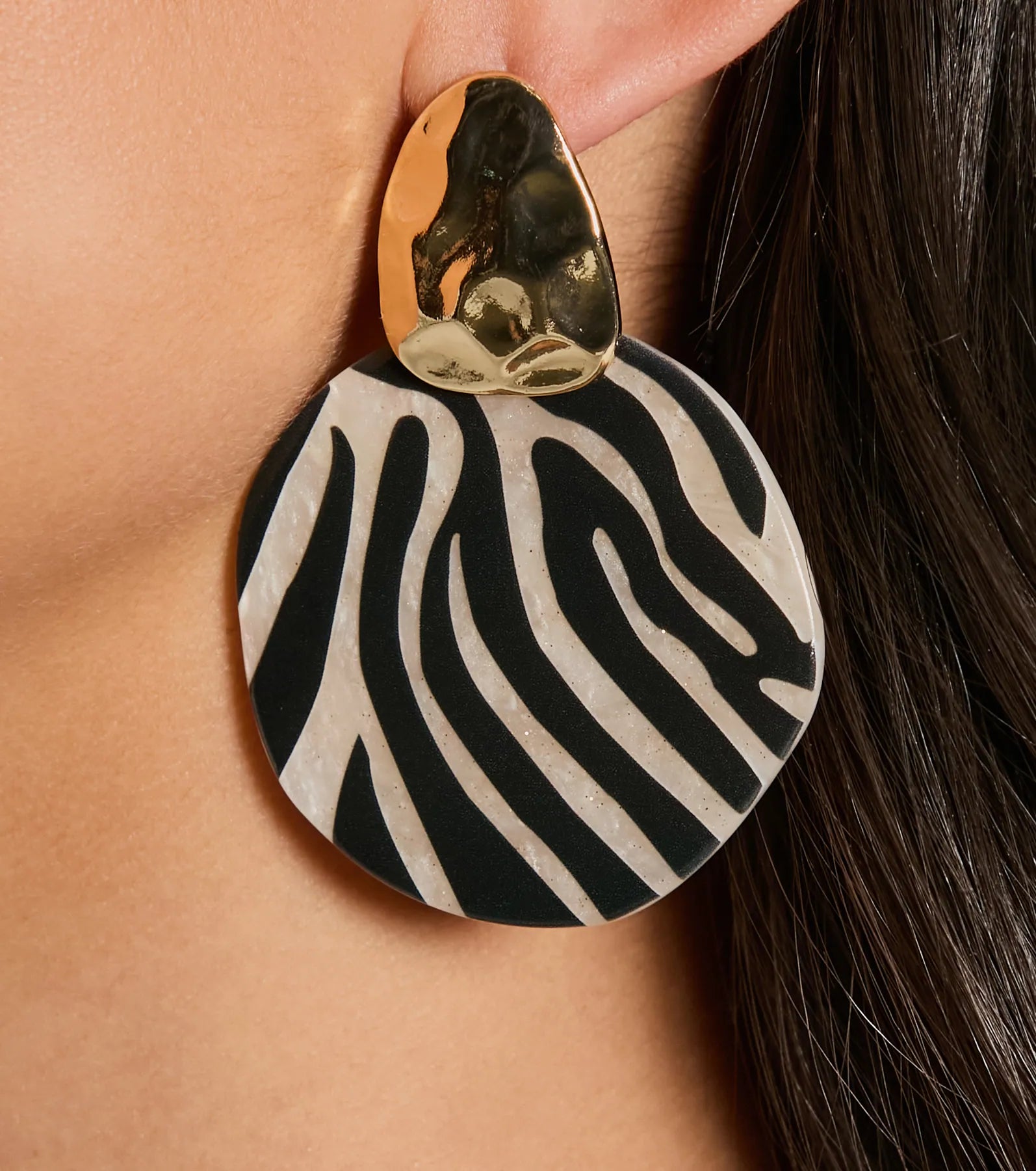 Hey there wild thing! You'll be looking fierce in these zebra statement earrings featuring a textured post...