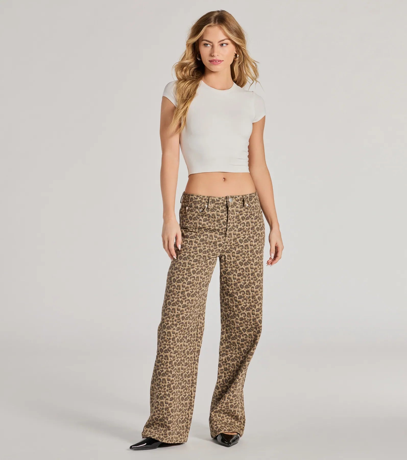 Wildly Chic Mid-Rise Leopard Print Baggy Pants